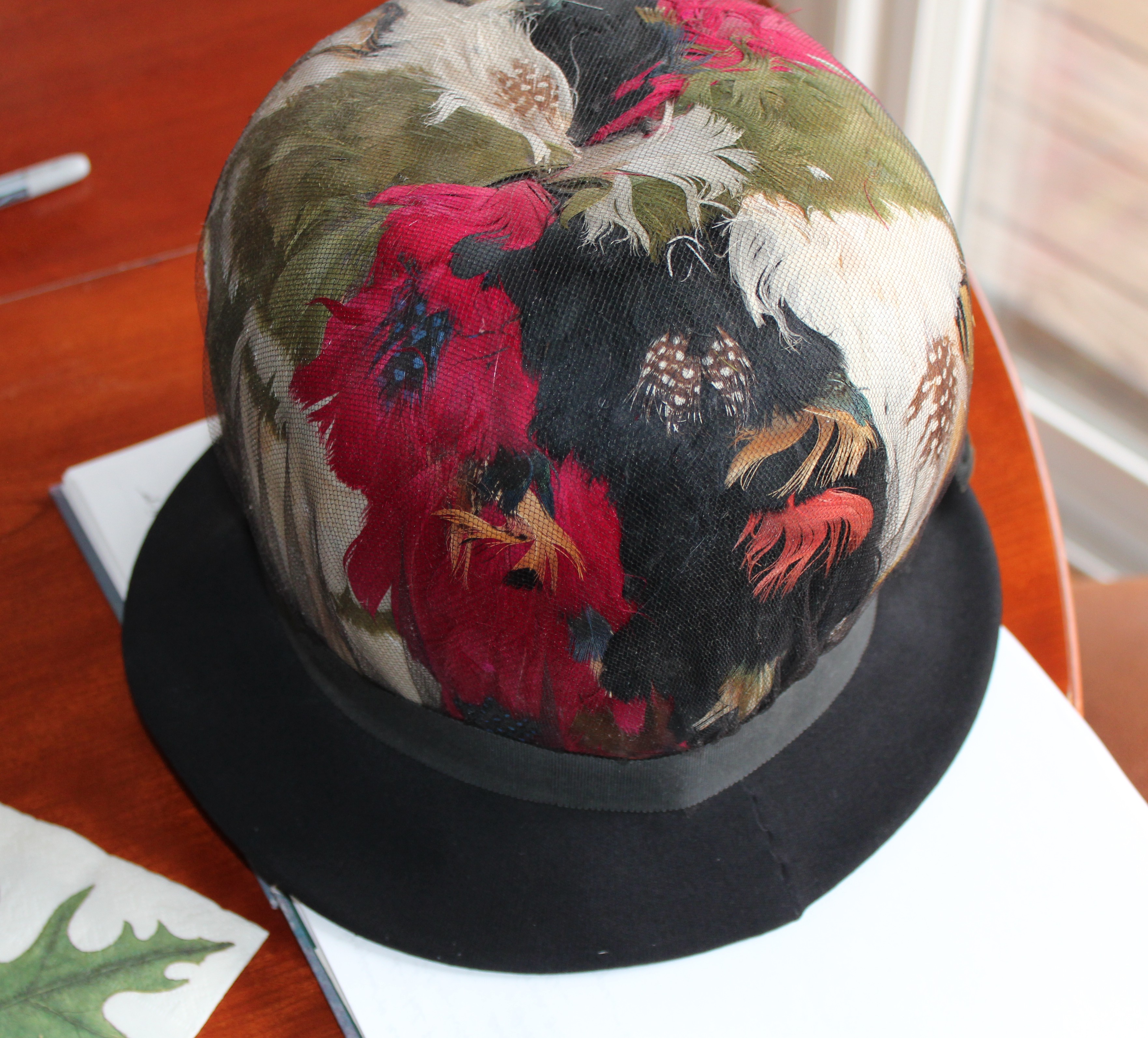 Oh, this hat would not be one to hide in a closet. It might be one to wear to an opening of an aviary or zoo, an after-the-hunt party, or I think I might just like to wear it to hike a bit of the Pacific Coast Trail (if I were Cheryl Strayed). Perhaps a friends group for parks would appreciate the species of birds represented by the feathers. I know my grandchildren would love this hat and would think up marvelous uses for it.