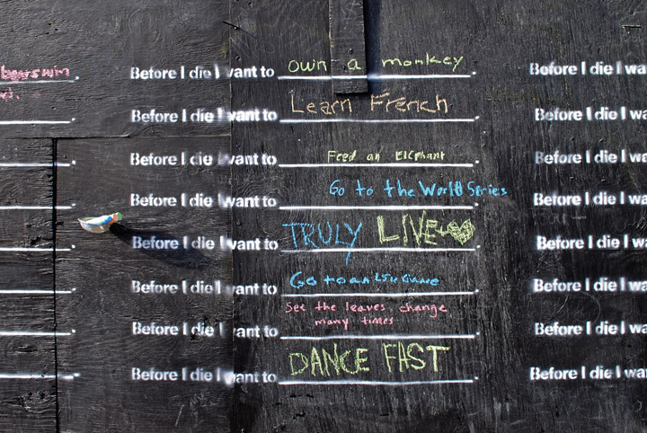 During our last writing retreat, Barbara Goldsmith led the group in a prompt writing session. She brought blank slips of paper inspired by Candy Chang to inspire others to document on the statement: “Before I die, I want to…”