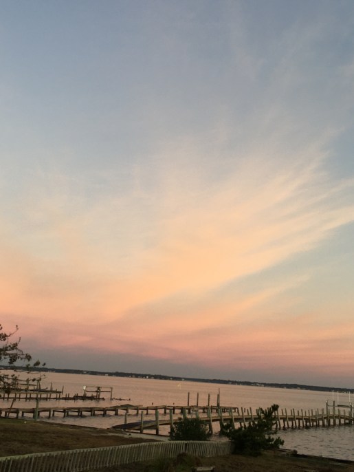 Rumi wrote, “We are all just walking each other home.” Sun setting at Scharme’s sound view at Emerald Isle. Farther along.